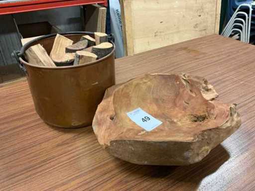 Consisting of copper kettle (32x26cm) and fruit bowl