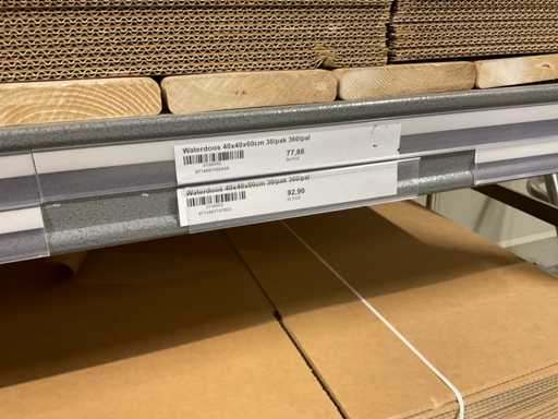 Water boxes in various sizes including 40x40x60 cm, 40x40x70 cm, 40x40x80 cm and interior