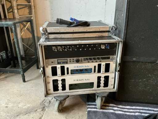 Consisting of 2x Subwoofer double 15", 2x Top 12" 1" driver, Ram Audio amplifier rack with 19" connection panel, LEM Digital DX24 processor and 2 amplifiers. A total of 2 flight cases, subwoofers on wheels. Equipped with cables.