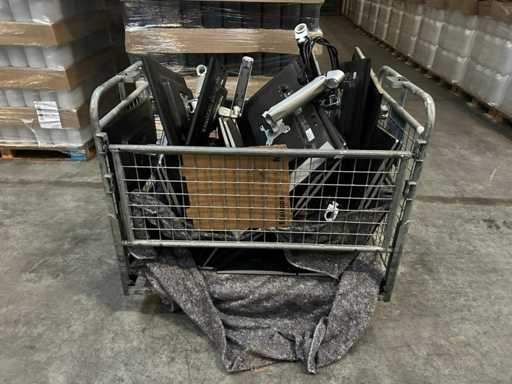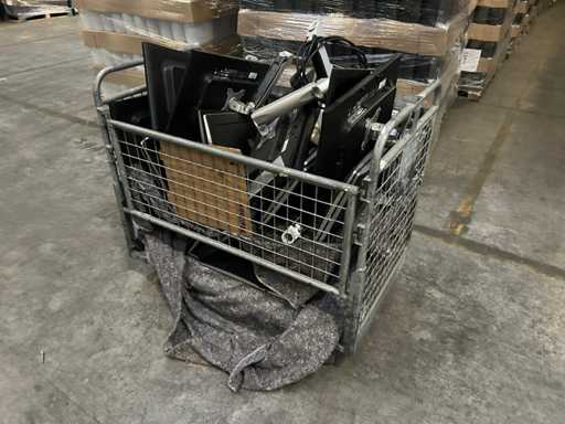 23 inches, power cables not guaranteed, monitor arm present (not with all screens)