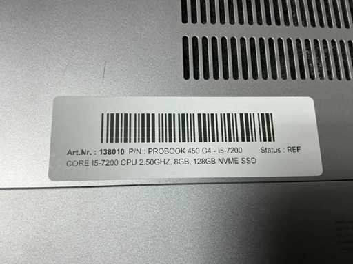 Laptops, PROBOOK 450 G4, Intel core i5-7200 CPU 2.50GHZ, 8GB , 128GB NVMe, no adapter, ( cleaned and tested ) [ID: 138010]