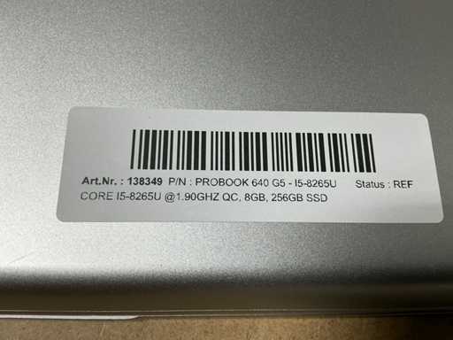 Laptops, PROBOOK 640 G5 , CPU: Intel Core i5-8265U @1.90GHz QC, MEM: 8GB, SSD: 256GB, no adapter, ( cleaned and tested ) [ID: 138349]