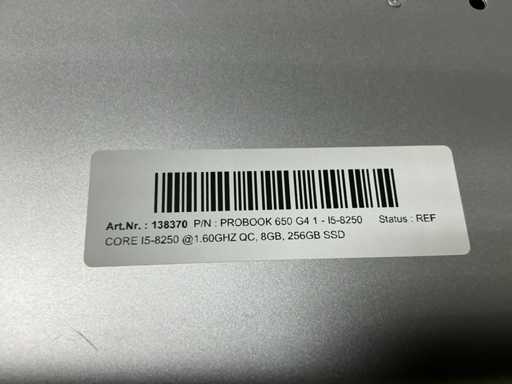 Laptops, Probook 650 G4, CPU: INtel Core i5-8250, MEM: 8GB, SSD: 256GB, no adapter ( cleaned and tested ) [ID: 138370]