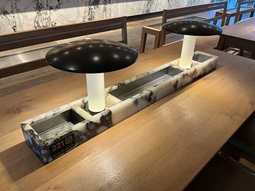 Bar table with marble superstructure and lighting. Sofa size: 171x50x115 cm. Stool size 37x37x75 cm.