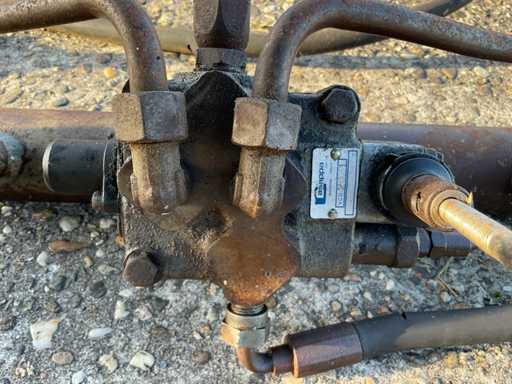 Hydraulic cat.2 top link with rod diameter 30mm and stroke approx 300mm with control valve, white cylinder with rod diameter 35mm and stroke approx 450mm, red cylinder with rod diameter 30mm and stroke approx 1250mm, Bucher 2-way control valve