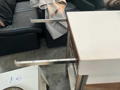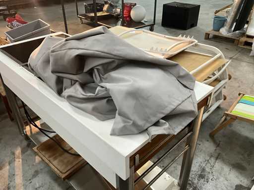 Equipped with 2x baking-grill plate size each 52x40 cm, stainless steel mobile base, wooden cutting board, cover