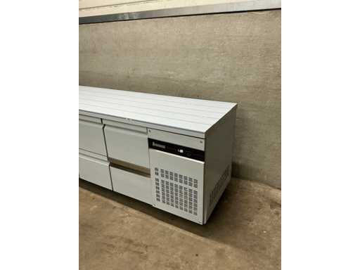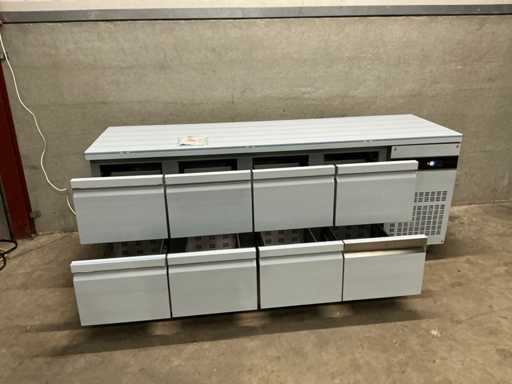 Unused refrigerated workbench with 8 drawers, R290 gas