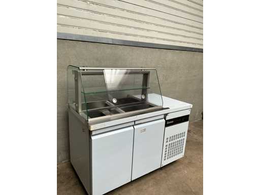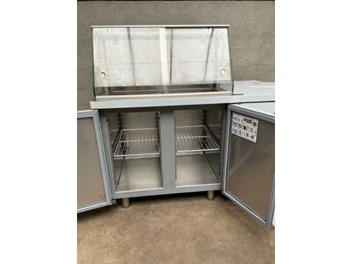 Stainless steel saldette, suitable for gastronorm baking, with glass construction equipped with 2 plastic sliding doors, 2 folding doors with height-adjustable grids, unused