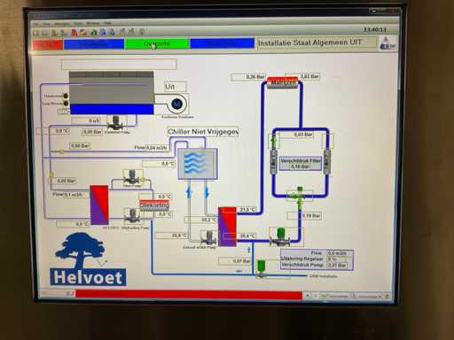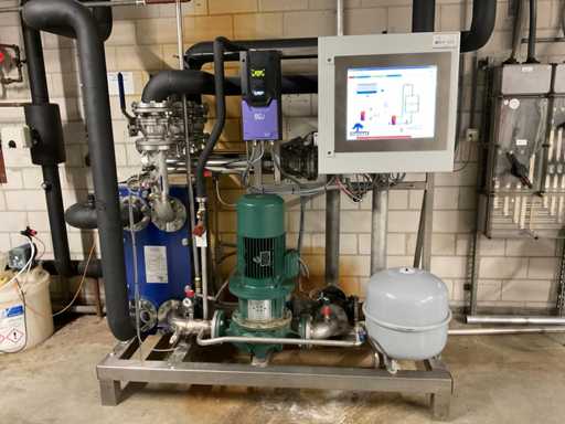 equipped with: Alfa Laval T8-BFM heat exchanger, pump with AEG 15Kw electric motor, Eco optidrive Invertek frequency converter, TFT solutions 19" touchscreen control panel (120GB), Windows 7, Reliance 4 Control program/software, stainless steel frame