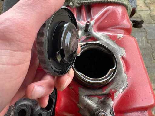 Used machine from previous ownership. The engine shows clear signs of wear and tear due to age and use, including oil and dirt residues, corrosion, oxidation, paint chipping and dirt on the housing and attachments.