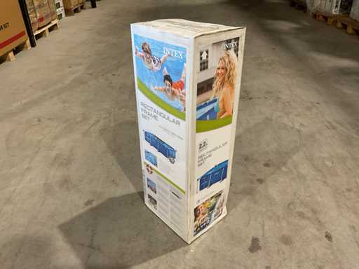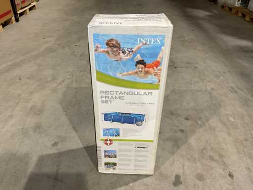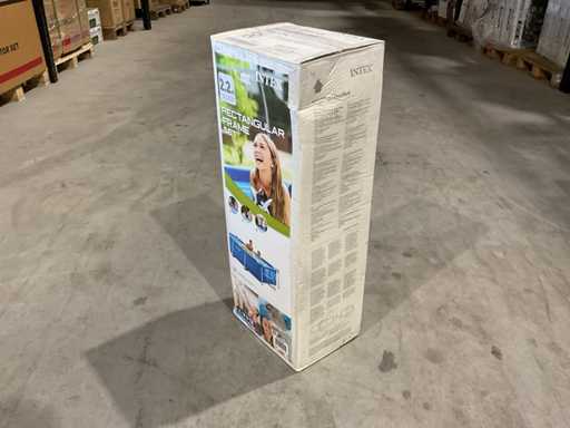 Equipped with Above Ground Pool; 3-layer PVC with gridded polyester interlayer; Frame powder-coated steel; Shape: Rectangle; Capacity 1662 liters; Recommended water depth (cm) 51; 3 persons; Pump connection (mm) 32; Length (cm) 220; Width (cm) 150; External dimensions lxw (cm) 269x 201; Height (cm) 60; Thickness liner wall (mm) 0.56; Thickness of liner bottom (mm) 0.50; Repair kit; Unused in box