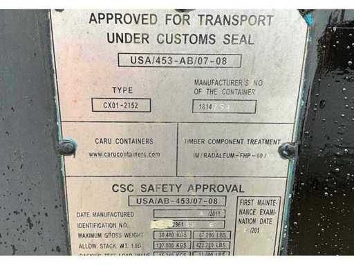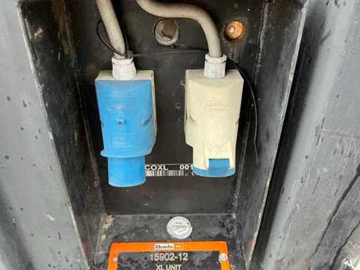 mounted in 20 ft. steel shipping container; equipped with 2 steel shutters; 2x Rotating Entrance Port; equipped with built-in halogen lighting (various lamps can be restored); technical room at the end; electrical control cabinet; power connection 230 Volt; overall size 6180x2450x2900 mm; twistlocks; forklift fork slots; the buyer must take care of his own transport and open truck with loading crane;