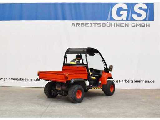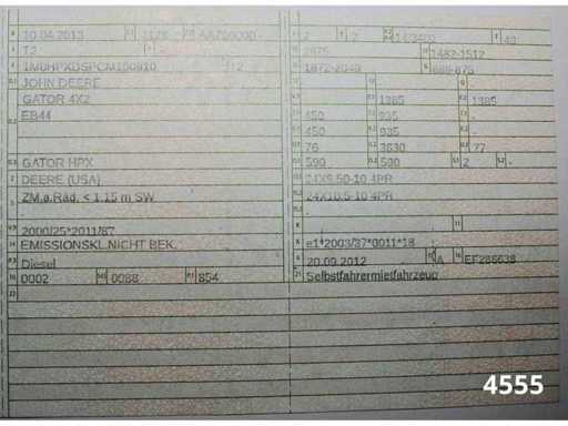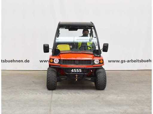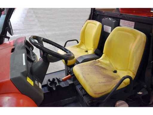 Internal number: 4555, Registration date: 10.04.2013, Hours: 1.355,6 hr, Permissible gross vehicle weight: 1.385 kg, Empty mass: 689-875 kg, Payload: 510-696 kg, Permissible towing capacity: 590 kg, Drive type: Diesel, Engine power: 14 kW, Displacement: 854 ccm, Number of axles: 2, Switchable all-wheel drive / 4WD, 2 seats, with roof and loading area, Colour: red with yellow seats, Note: starts sluggishly, presumably preheating device defective