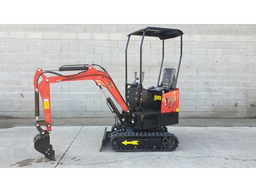 Mini crawler excavator, complete with digging bucket, electronic ignition, rubber tracks, 360-degree continuous rotation fifth wheel, hitch and control for hammer. Never used 0 hours