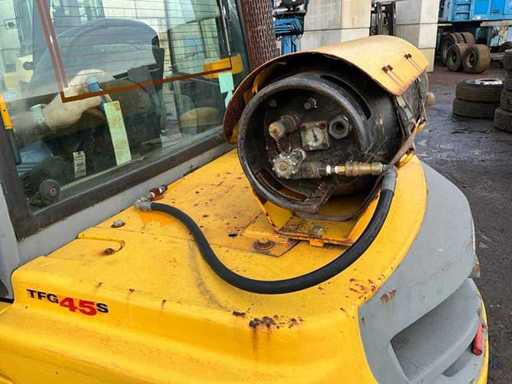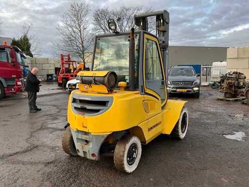 Gebruik van de vorkheftruck geschiedt geheel op eigen risico. Daarnaast kunnen zich wachttijden voordoen.