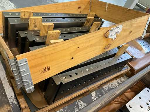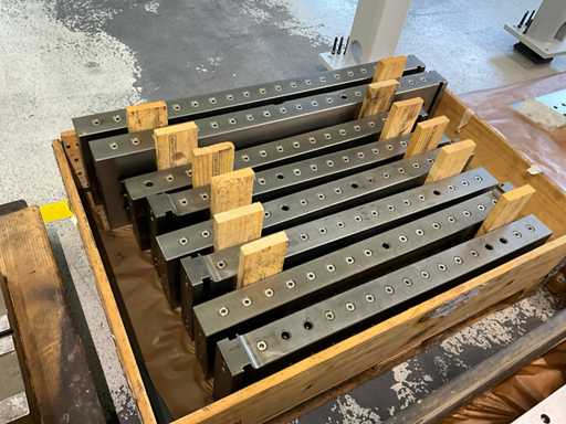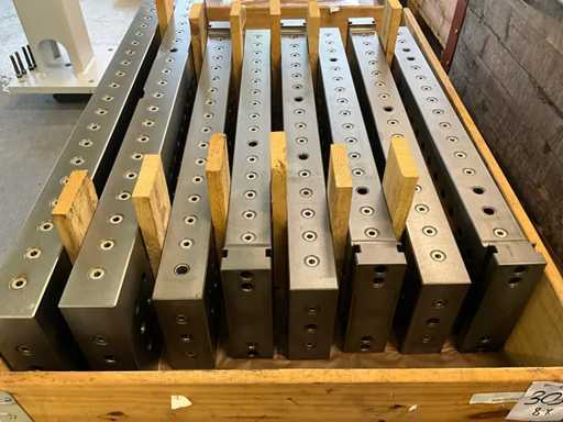 Various designs and sizes, 1. 2x dimensions 1075x250x70 mm, 2. 6x 875x230x70 mm, hole spacing 50 mm, weight estimated approx. 500 kg, more details see photos