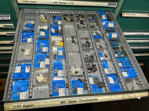 Contents of 10 drawers, weight estimated approx. 200 kg, quantity and further details see photos