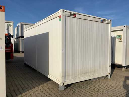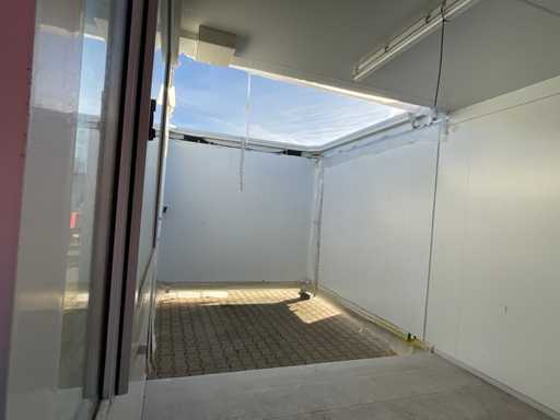 steel frame; Walls; power connection; lighting; twistlocks; part of the roof and floor out; the buyer must take care of the transport and truck with loading crane himself;