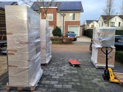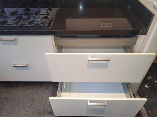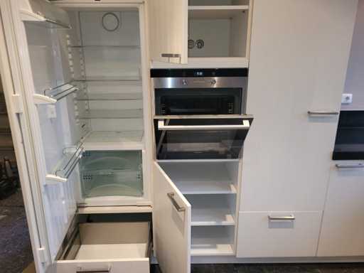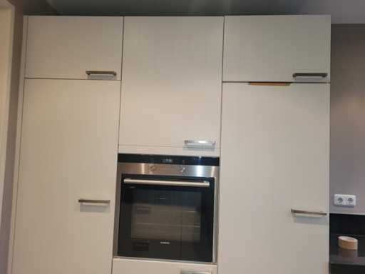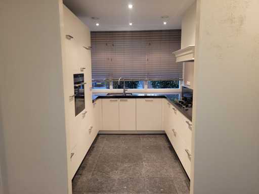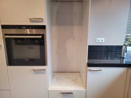 Condition used; Without freezer and without Quooker; dimensions left part lxw approx. 250x60 cm; dimensions spacer lxw approx. 290x80; Dimensions right part LxW approx. 250x60 cm; high cabinets approx. 230 cm high; already disassembled and packed on pallets. (stacking, exchange or deposit per pallet); Pallets are not included; pay a deposit when picking up, or stack pallets; worktop not packed on pallets