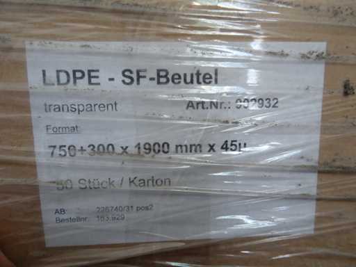with 4x bag holder, article number: 902932, LDPE bag 750+300x1900mmx45ug, packed per 50 pieces per box (concerns 2 pallets)