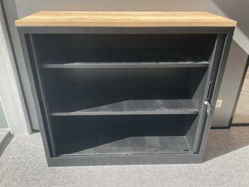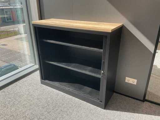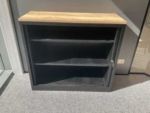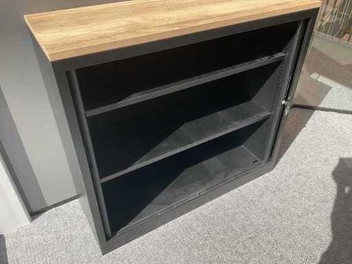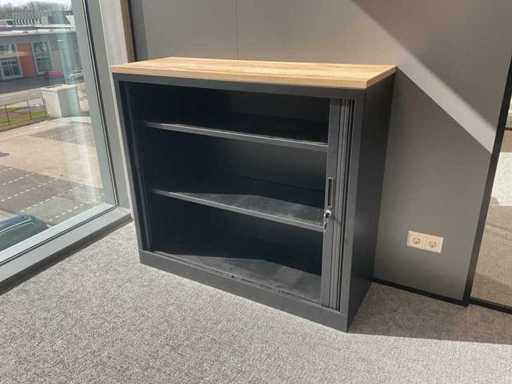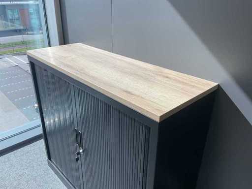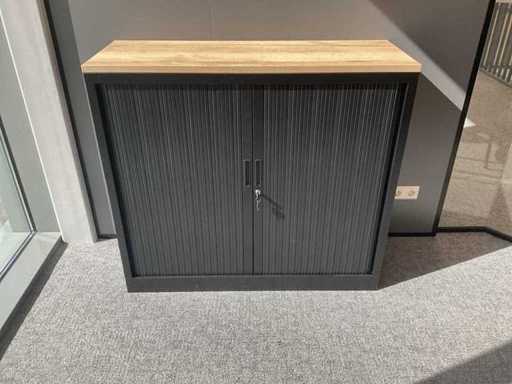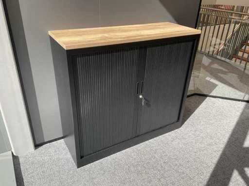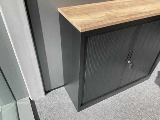 KTR roller shutter cabinet, dimensions: 105 x 120 x 43 cm, body steel and plastic slats, color black and with lock and 2 shelves