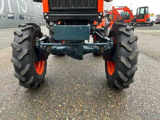 4WD, 6-speed manual, 3-speed PTO, 3-point linkage, 3-cylinder Kubota diesel engine
