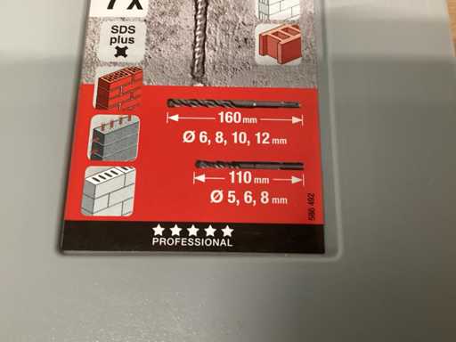 set of masonry drills, 7 pieces, SDS plus, size 5 to 12