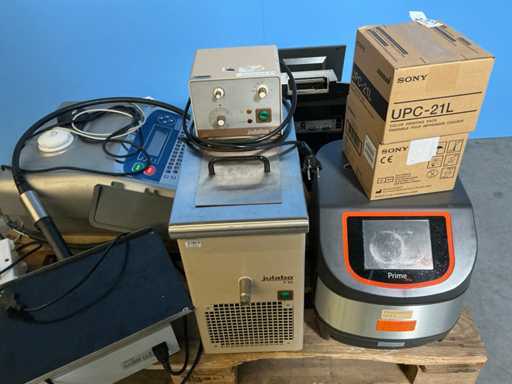 Different types including CO-OX ABL80, Linx 4900, Julabo F10 water bath, Prime Elite, VWR Rocking platform.