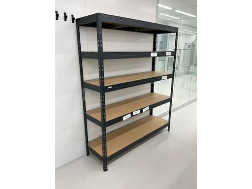 Consisting of work tables dimensions 310x160x141 cm and 865x75x110 cm (working height 94 cm) equipped with sockets; desk 120x60x73 cm; Shelf rack 150x45x180 cm and various stools