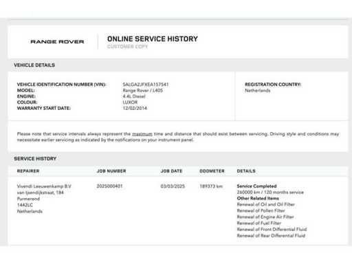 This is an original Land Rover Range Rover 4.4 SDV8 Autobiograpy from 2014 delivered in the Netherlands.