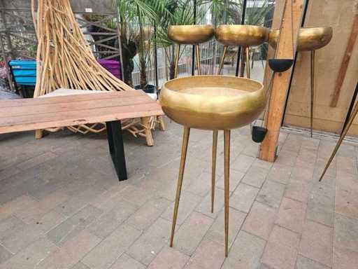 These exclusive decorative bowls in a noble brass look are the ultimate statement piece for sophisticated interior styles and event decorations. With an impressive total height of 113 cm and an elegant, slender tripod design, they add a luxurious and modern atmosphere to any room. The organically shaped bowls are ideal for opulent floral arrangements, as stylish planters, or as solitary art objects in foyers, galleries, or living areas. A rare bulk lot of 100 pieces, perfect for retailers or large-scale projects.