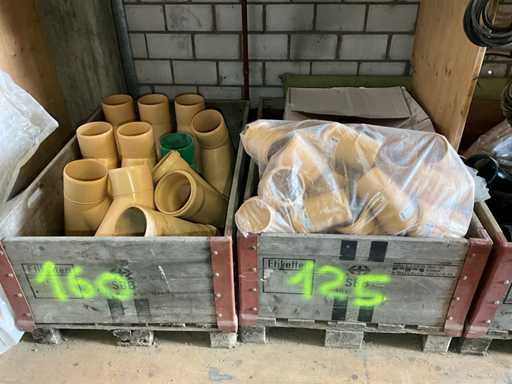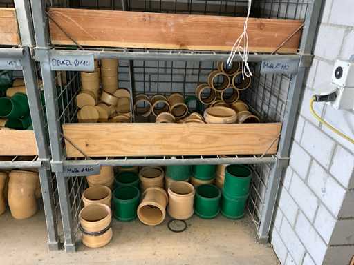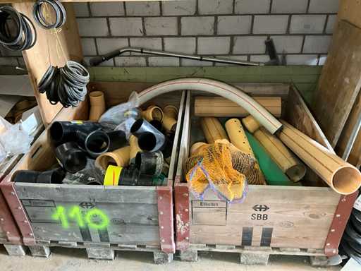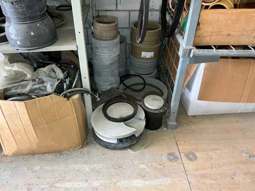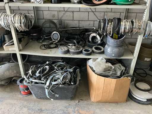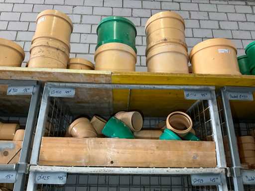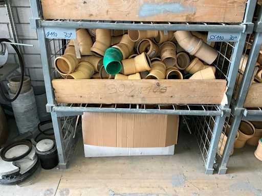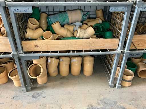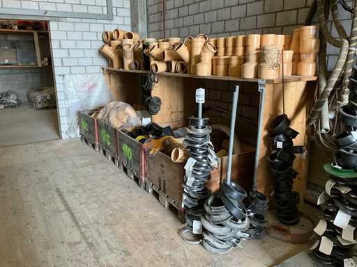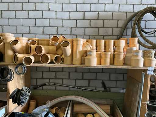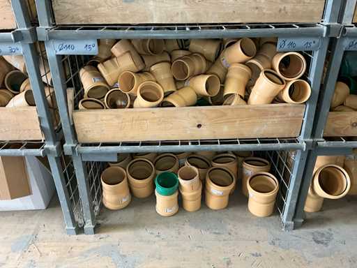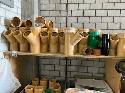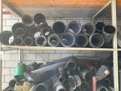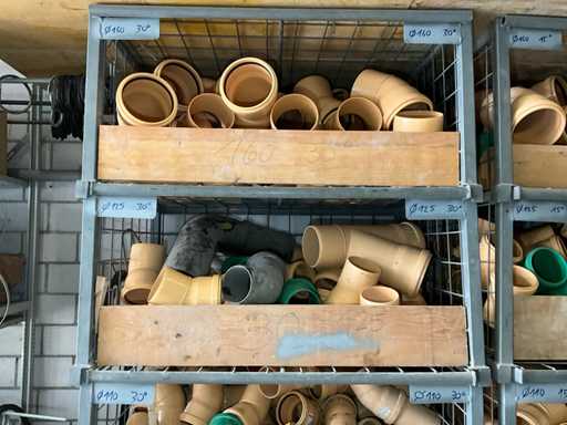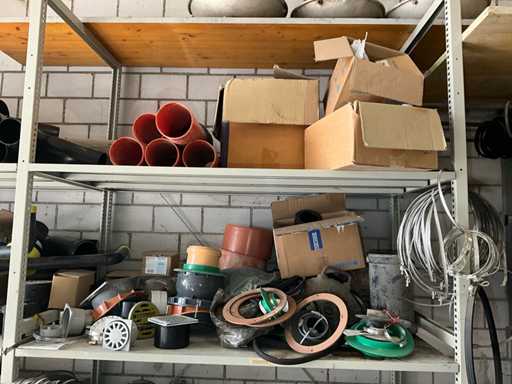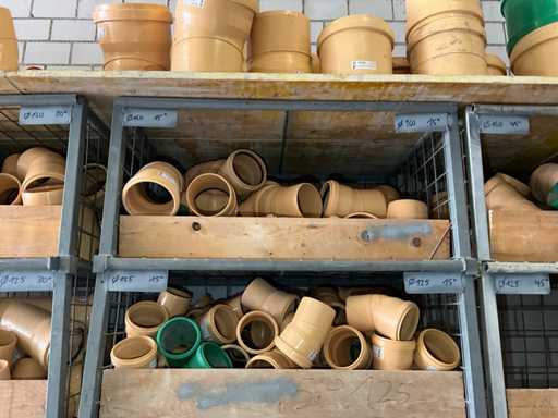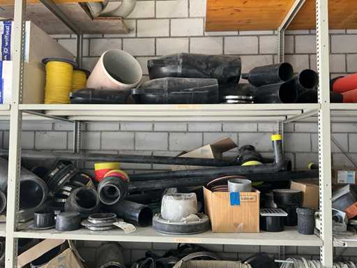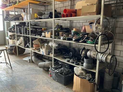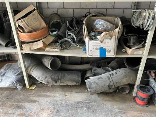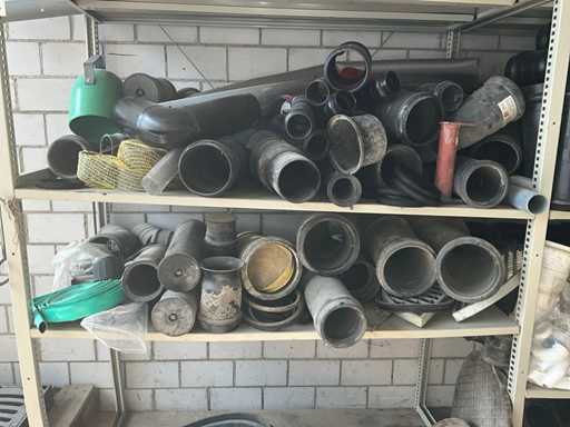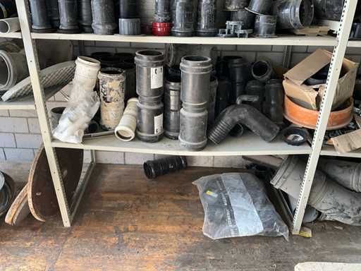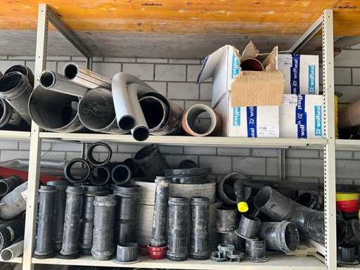 Large lot of pipe connections with accessories and shelves