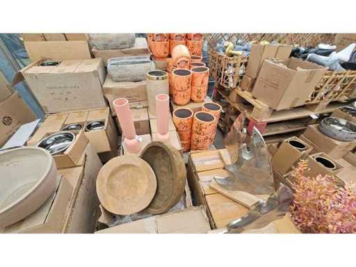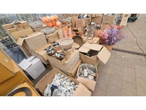 Huge assortment for resellers or decoration enthusiasts! This extensive mixed palette (POS 32) contains approx. 500 high-quality decorative items. Look forward to a diverse selection of stylish ceramic pots in modern colors like salmon with gold accents, rustic wooden bowls, elegant metal sculptures, and fine porcelain vases. The mix offers the right highlight for every interior style – from Mediterranean to modern-minimalist. Ideal for stocking retail spaces or for extensive decoration projects.