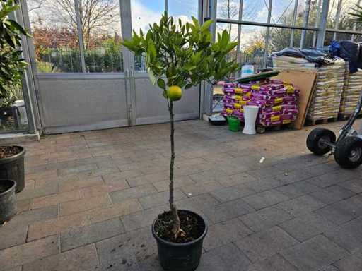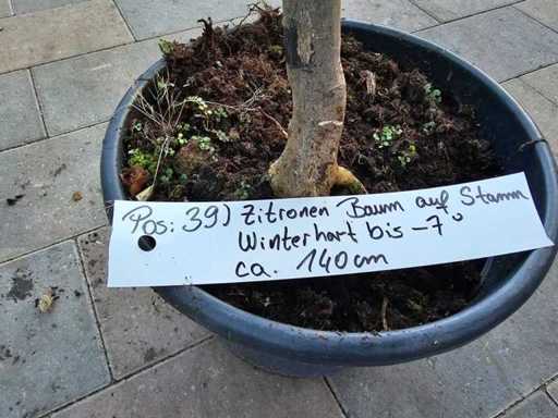 Bring Mediterranean flair to your garden or terrace with this elegant lemon tree on a trunk. The plant impresses with its straight growth and the already visible, strong green fruits, which turn into a bright yellow when ripe. Particularly noteworthy is the conditional hardiness down to -7°C, which makes this specimen much more robust than conventional citrus plants. An ideal, fragrant eye-catcher for sunny locations.