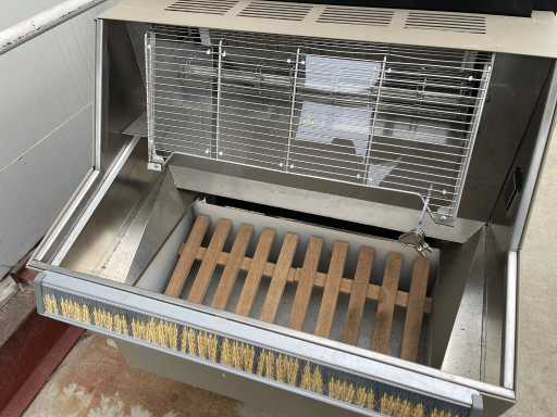 380V ; The bakermatic is intended for baking from small crust rolls. A vibrating plate moves the rolls on the conveyor belt. During transport through the oven, the rolls are baked. Finally, the sandwiches are delivered in a basket on the side. ; Not tested