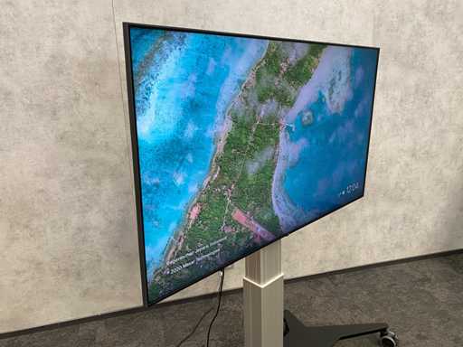 Equipped with electrically adjustable height and mobile tripod. Minimum height approx. 155 cm. and maximum height approx. 205 cm.
