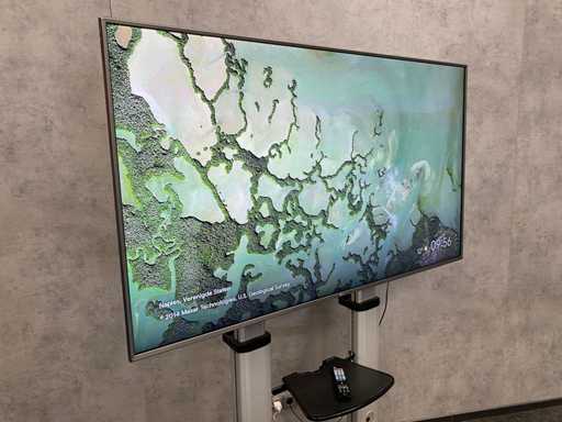 LG - 70" 4K ultra HD monitor on mobile tripod