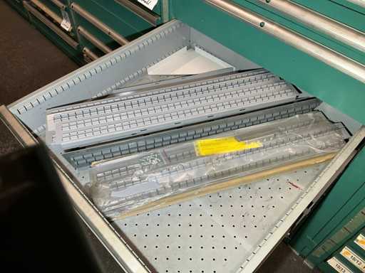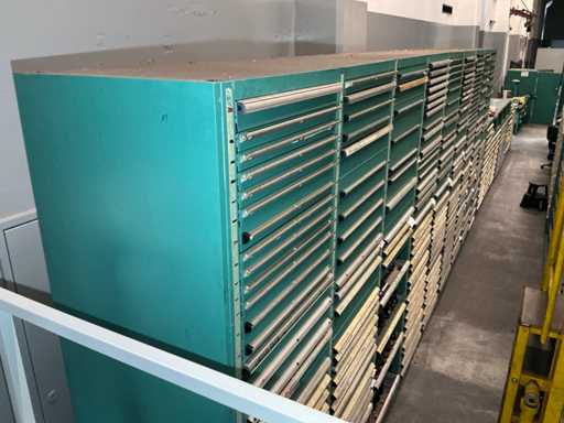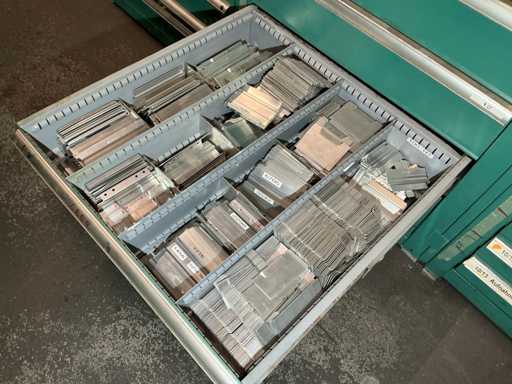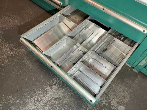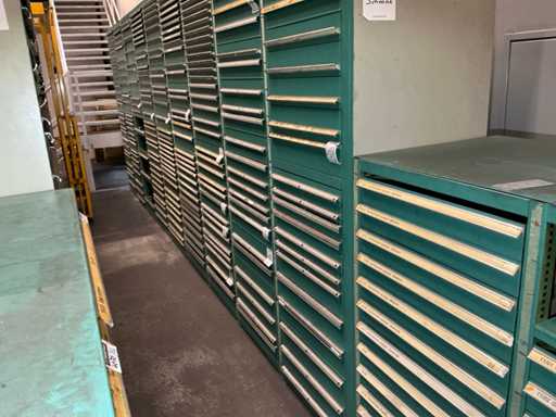 Without contents, with 248 drawers, drawers partly with dividers or storage trays, collection by arrangement with Troostwijk AG / Daetwyler AG, weight estimated approx. 2000 kg, see photos for more details