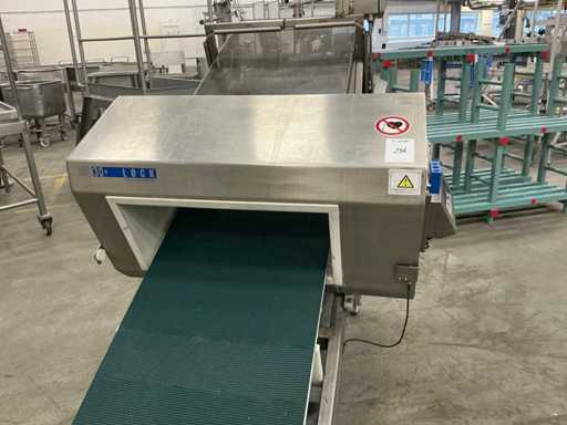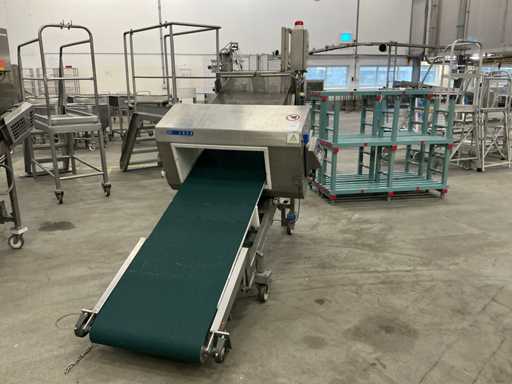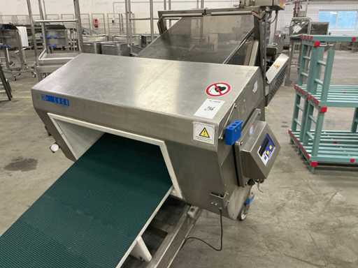 Throughput size 650x260 mm, on inclined conveyor belt, width 600 mm, length 2600 mm