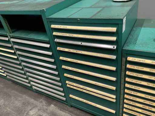 Drawer cabinet "Lista" dimensions 720x730x1395 mm, with 10 drawers, key missing, weight estimated approx. 250 kg, quantity and further details see photos