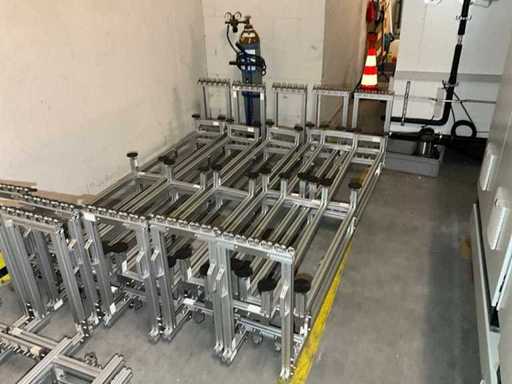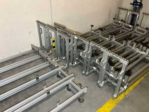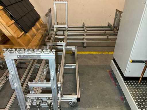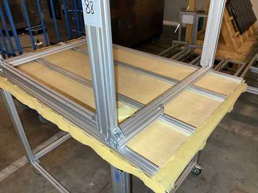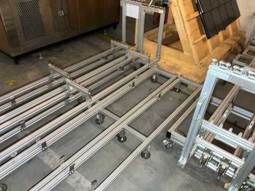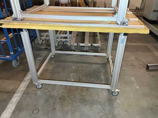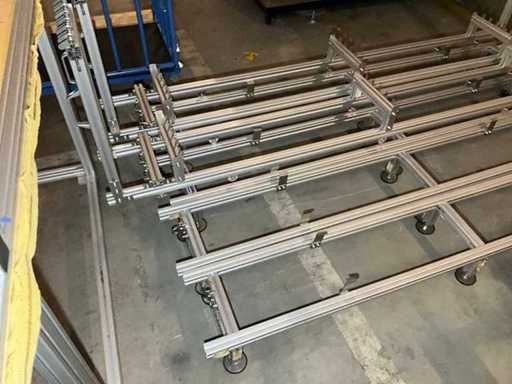 Lot of aluminium profiles with transport trolley and pallet
