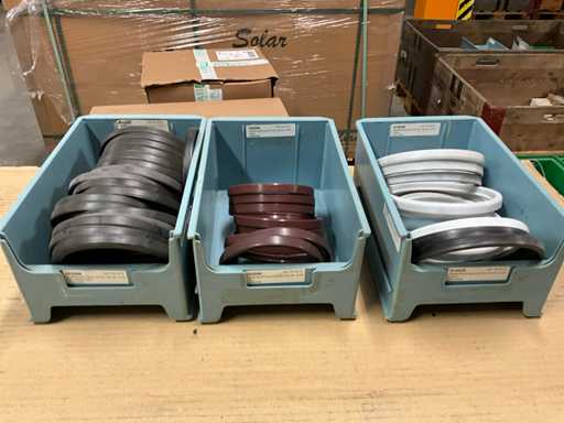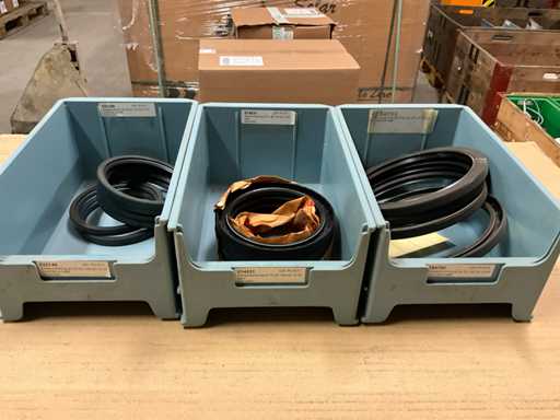 Content 1 pallet with frame, various designs and sizes, in 35 storage boxes, weight estimated approx. 100 kg, quantity and further details see photos,