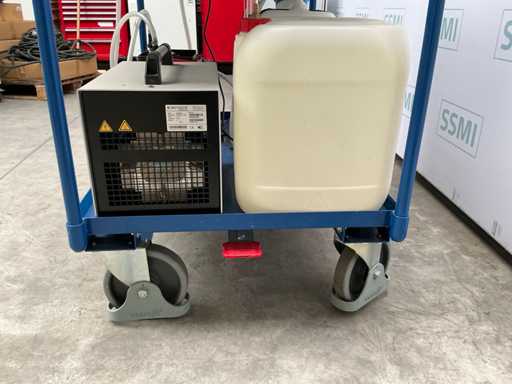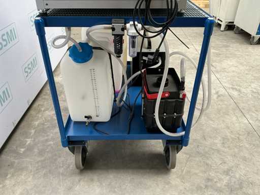 Includes empty jugs GLYSANTIN G65 pink, Metzger Technik Whisper L (dry-running diaphragm vacuum pump). On mobile cart