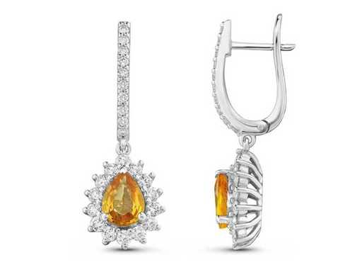 Luxury AAAA Natural Vivid Yellow Sapphire Earring 2.51 carats in 18k white gold 4.98 grams, with 2 high-quality natural Vivid Yellow Sapphire 1.59 carats in pear shapes and 48 natural round brilliant-cut diamonds 0.92 carats. Certified by DIA Suisse. For more information, see certificate. The actual jewel is more beautiful than its photos. Retailer's estimated price: € 13'850 - New jewel.
