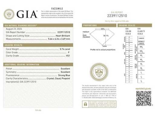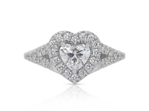 Luxury Ring Natural Diamond 1.15 carat in 18k white gold total weight 3.47 gr. with a central natural heart shape diamond F/VS1 of 0.74 carat with 42 natural round brilliant E to F / VS diamonds of 0.41 carat. Certified by GIA, one of the largest international certification and evaluation institutes for diamonds and precious stones. More information see the certificate. The jewelry in reality is better than the photos. Retailer's estimate price: € 9'750.- New Jewel.