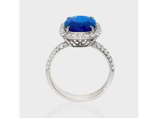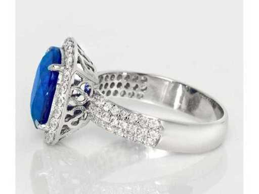 Luxury Ring Natural Vivid Blue Sapphire 5.08 carats in 14k white gold 4.36 grams, with a Natural Vivid Blue Sapphire 4.33 carats in cushion shape and 71 natural round brilliant-cut diamonds of 0.75 carats. Certified by GCI, one of the world's largest independent gemstone certification and appraisal institutes. The actual jewel is more beautiful than its photos. Retailer's estimated price: € 42'950.- New jewel.