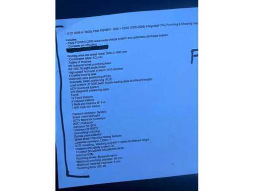 * Equipped with Finn Power CS30 plate storage & automatic destacking system