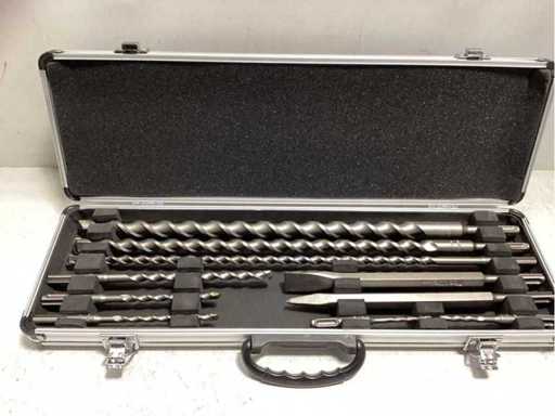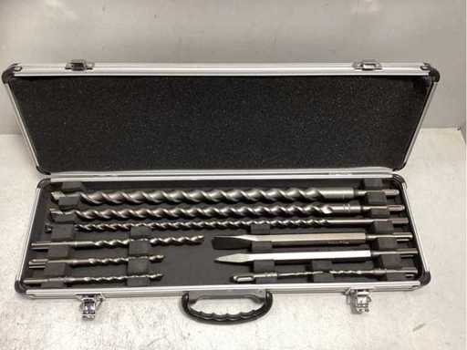 This 10-piece set with SDS-Plus connection consists of: concrete drills length 110mm (5.5 - 6) concrete drills length 160mm (7 - 8) concrete drill length 210mm (10) concrete drills length 460mm (10 - 16 - 20) pointed chisel 250mm, cold chisel 20x250mm