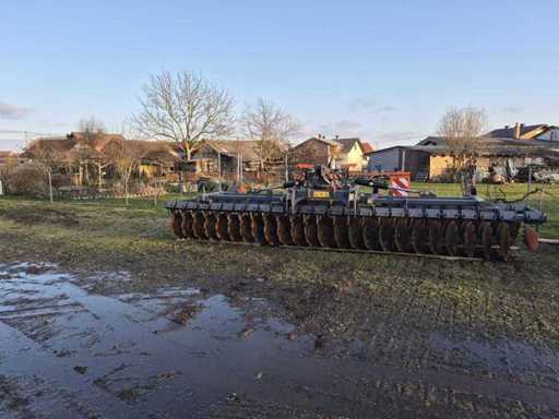 6.000 mm mounted type. Harrow with full equipment: hydraulic folding, lighting, and full roller with scrapers, weight 4.360 kg