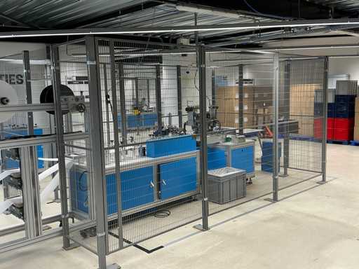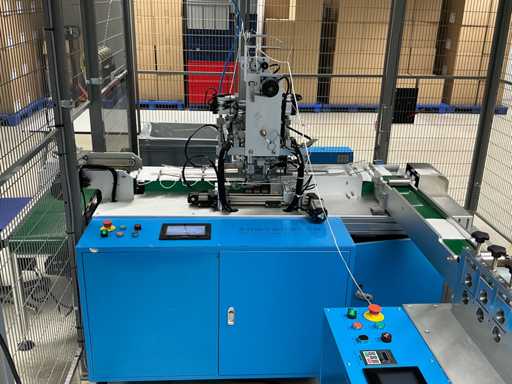 Producer Zhengye Technology; Surgical mouth mask type llR, blue, elastic; Power 6.5kw; real capacity 3,000 per hour; mask size LxW 175mmx95mm; equipped with Troax Smartfix safety cage